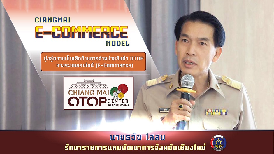 Chaingmai E-Commerce Model มุ่งสู่ความเป็นเลิศ ด้านการจำหน่ายสินค้าโอทอป ทางระบบออนไลน์ (E-Commerce) ได้รับการคัดเลือก จากผู้ประกอบการโอทอป ทั่วเชียงใหม่ ด้วยสินค้าที่มีคุณภาพ มีมาตรฐาน มุ่งสู่สากล